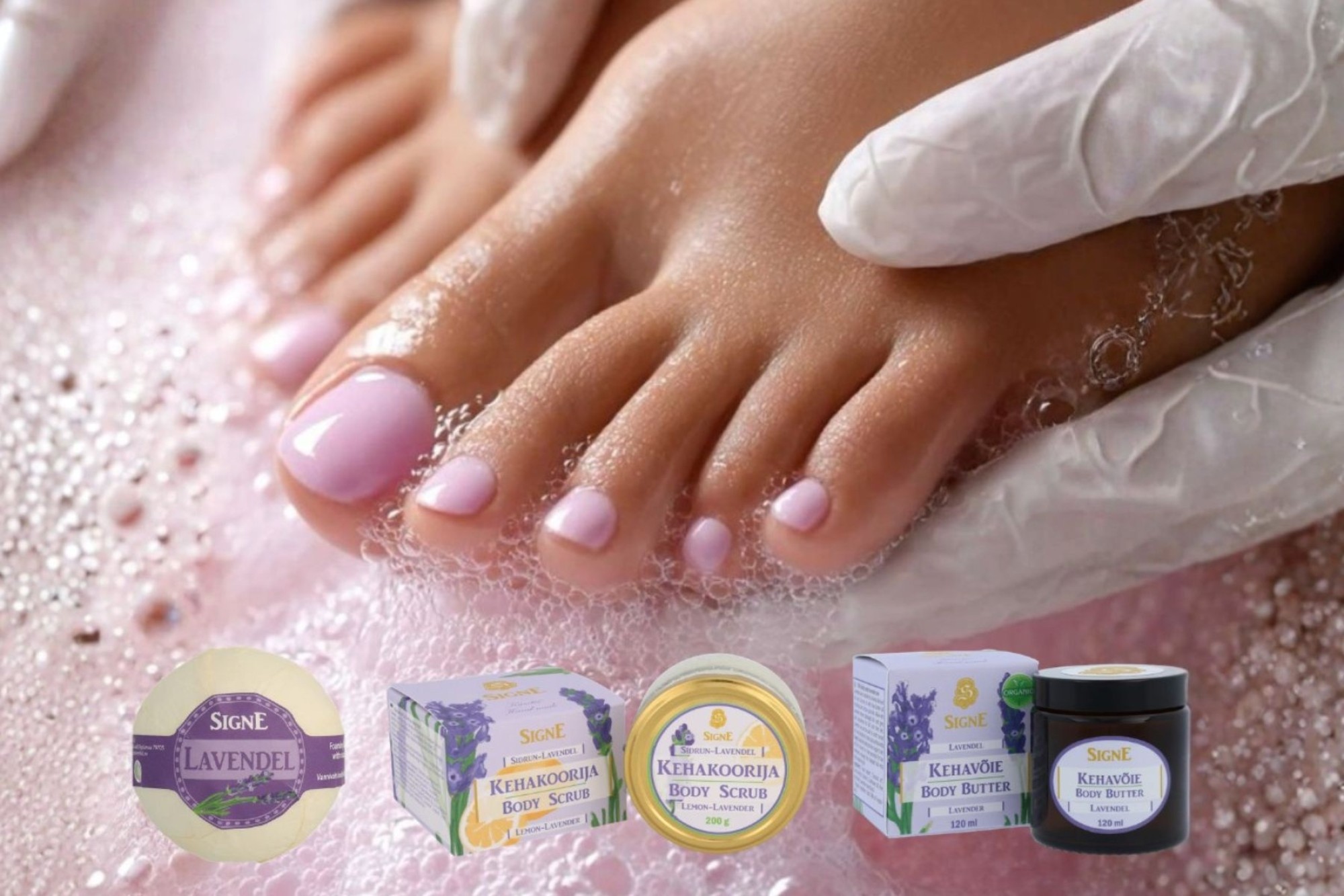 Signe Seebid lavendli pediküür on lõõgastav ja põhjalik hoolitsus, kus kohtuvad looduslikud koostisosad, käsitööna valminud kosmeetika ja ajatu lavendli aroom. Kingi elamus, mis pakub rahu meelele ja sära jalgadele.